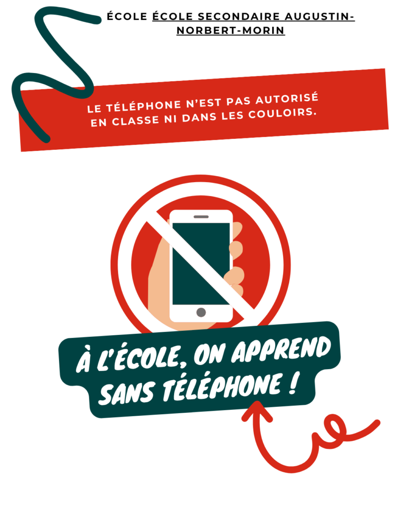 Une affiche issue de Canva ici: ” A l’école, on apprend sans téléphone !”